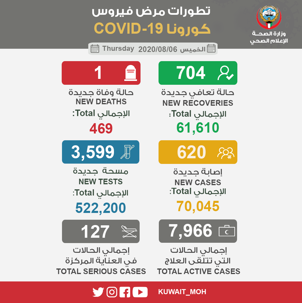 اللهم لك الحمد نزول 200 حالة من اجمالي عدد الحالات التي تتلقى العلاج خلال 24 ساعة ونزول 10 حالات تتلقى العلاج في العناية المركزة حالات خلال 24 ويعتبر هالعدد من أهم الاعداد لانه يقيس مدى معدل اشغال الأسرة في المستشفيات في الكويت https://pbs.twimg.com/media/Ee-HMGnW...g&name=900x900 |