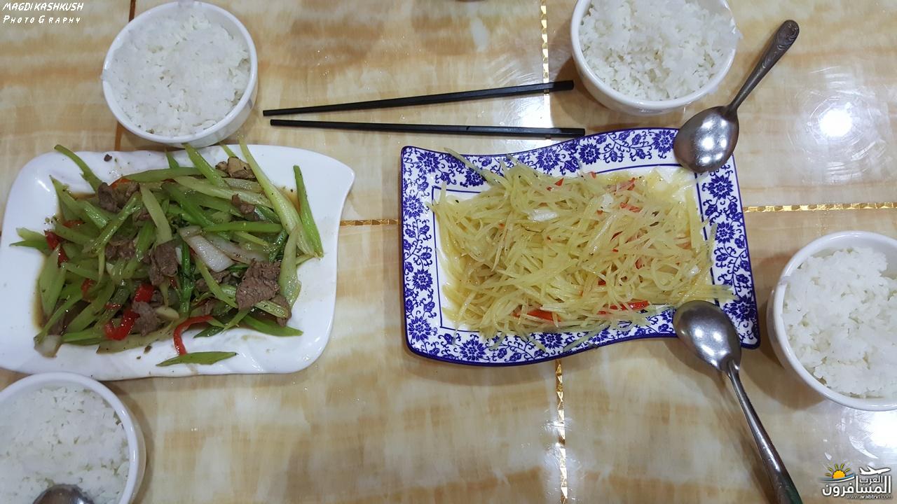 نظرة هنا نظرة هناك نبحث عن مطعم يرضي ضميرنا، حتى وقعت أنظارنا على لافتة مكتوب عليها "Muslim Restaurant" و "حلال" تزينها، سبحان الله ميسر الأمور، توكلنا ودخلنا على أن لا تخيب أمالنا بما يقدمه هذا المطعم من مأكولات. مطعم صغير بسيط، أربع طاولات، بعض الأشخاص يجلسون وأمامهم أطباق محتواها يبدو مقبولا. أحضروا لنا قائمة الطعام، كلمات وأحرف وأرقام صينية، ما الحل؟، ليس أمامنا سوى الاختيار وفقا للصور، بحثنا عن أقربها لمأكولاتنا الشرقية، هذه تبدو معكرونة مع البصل والخضار، وهذا لحم بقر مع الخضار، وطبعا لا تكتمل الوجبة دون طبق الأرز. أخرجت جهازي وفتحت برنامج Pleco للترجمة، وبدأت محادثتنا الطويلة مع الموظفة بالإشارات وفقا للكلمات التي أترجمها وأريها إياها، تأكدنا من محتوى الأطباق مع خلوها من الفلفل الحار، وطلبنا كذلك ملاعق، وفحصنا سعر كل وجبة.