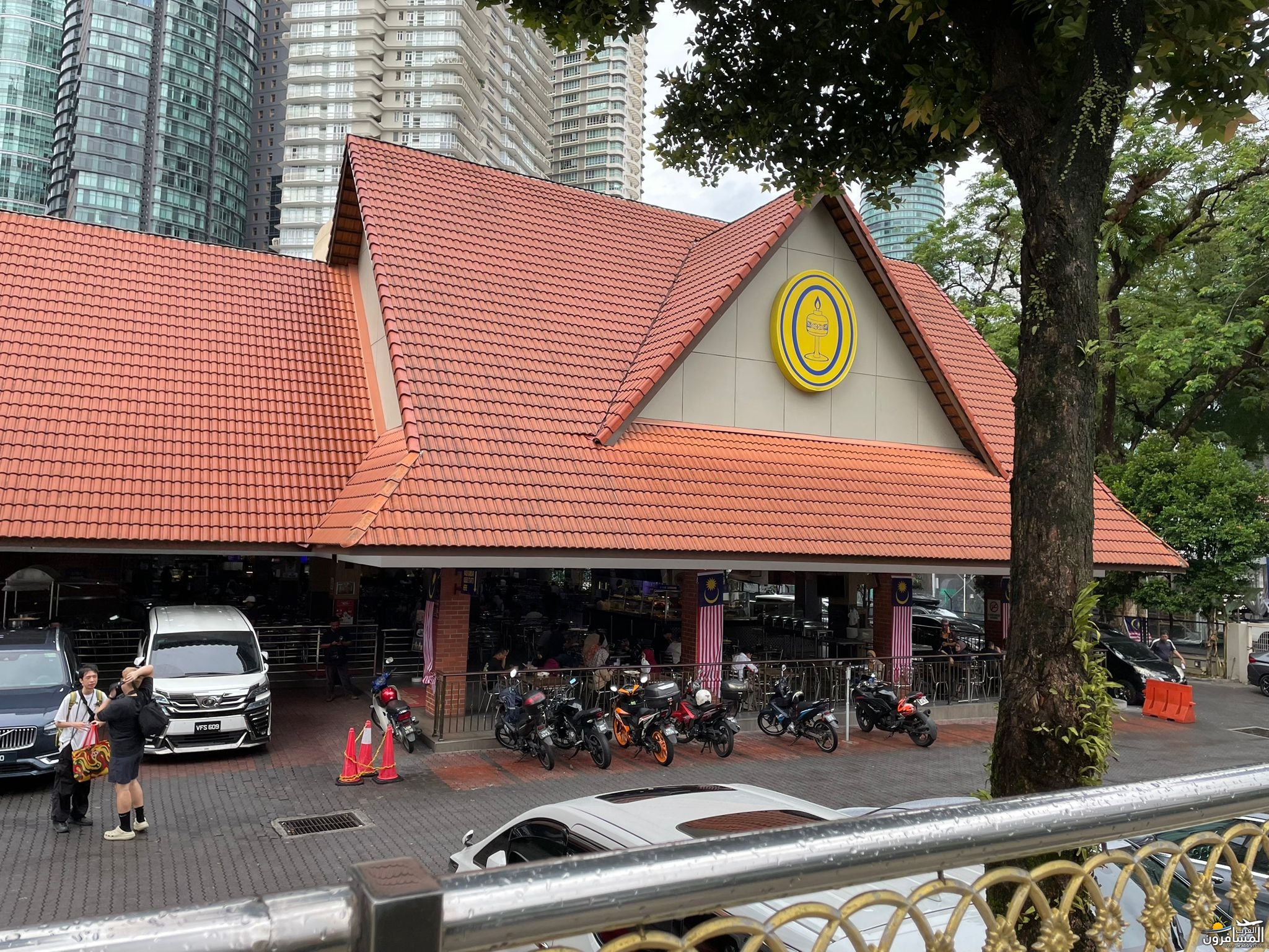 وصلت للمطعم المنشود وهو مطعم Wanjo وانغو الذي يتشهر بتقديم الطبق الماليزي التقليدي الشهير ناسي ليماك مع المشروبات وأشهرها تي تاريك ( شاي كرك ) . عادة يكون مزدحم ولكن بما أنني أتيت في الصباح الباكر فلا يوجد أي ازدحام يذكر ، طلبت الطبق الشهي من دون السامبال والذي يكون عادة الصوص الحار جدا ، السعر بسيط كله على بعضه 15 رينغت ، المكان واسع وشرح ويرتاده السياح بشكل كبير . ما أن خرجت حتى كان رذاذ المطر يعطي جوا جميلا مع الغيوم المتفرقة فقررت السير مشيا على الأقدام عائدا للفندق لكي استكشف المكان ، فكان رابط الوصل بين الحي القديم وبين الجديد جسر سالوما الرائع وخاصة في الليل حيث يكتسي بالأضواء للعلم الماليزي . شاهدت المنازل القديمة منها القديم المتهالك ومنها المحالات وأستغرب من عدم المحافظة عليها عن طريق الترميم .