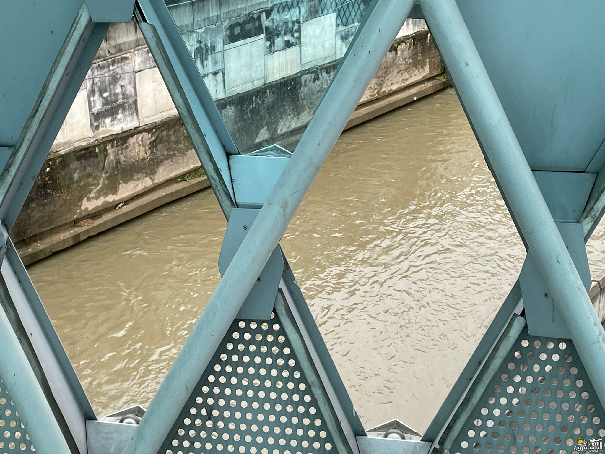 وأسفل الجسر النهر يجري ، ومنظر البرج التوأم جميل لالتقاط الصور من الأعلى.