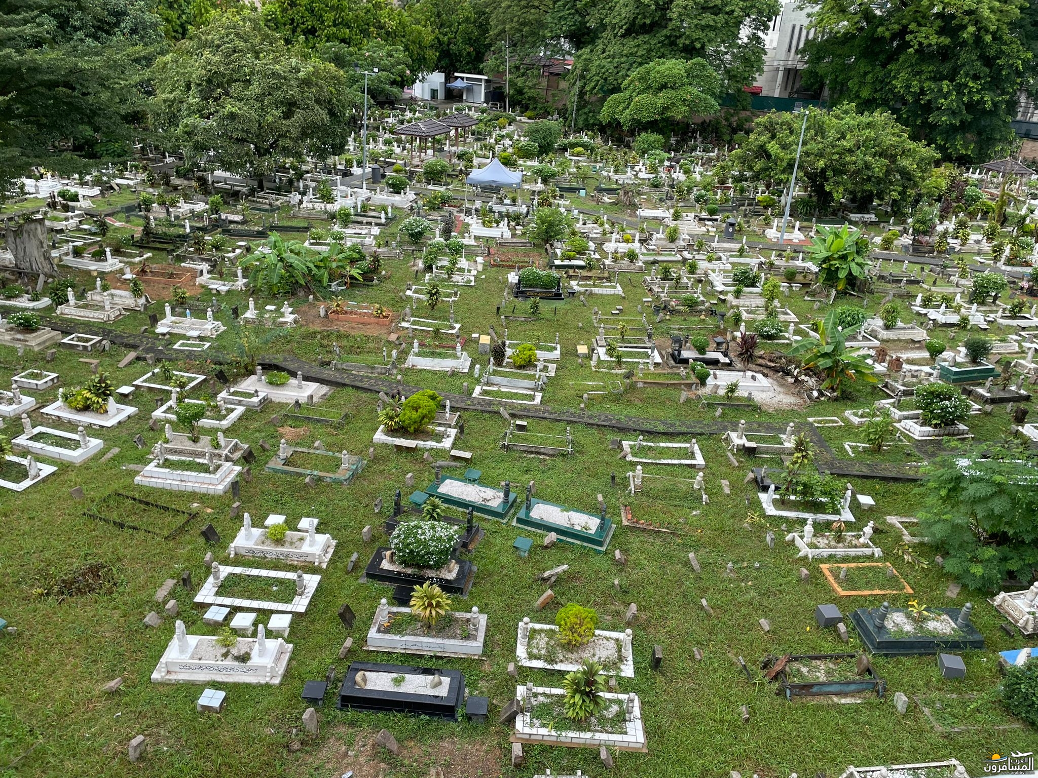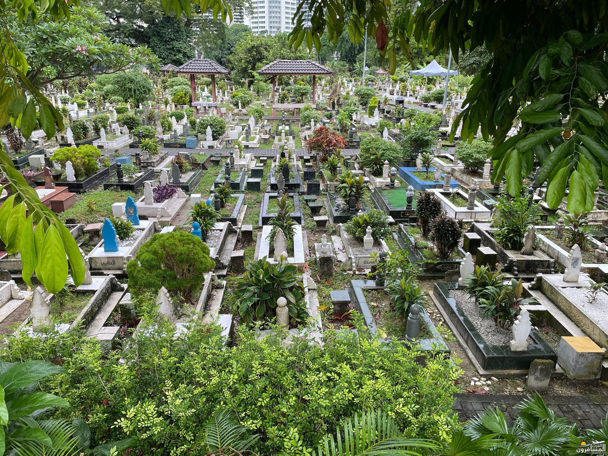 وعندما تنزل من الجسر ترى على الجانب الأيمن مقبرة المسلمين رحمهم الله ورحم الله موتنا وموتاكم أجمعين .